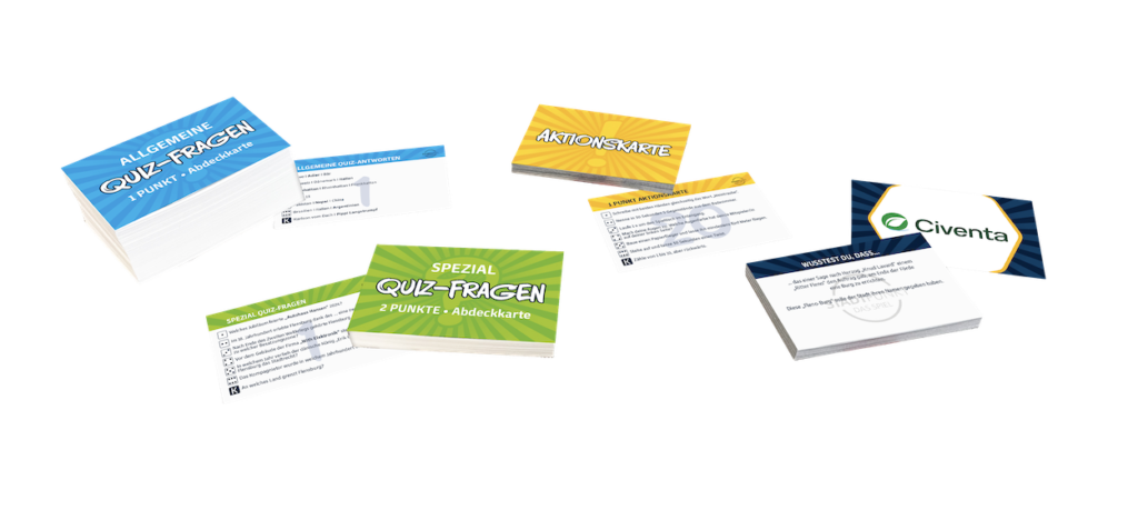 Neben den vielen Quizfragen sorgen die Aktionskarten dafür, dass du an deine Grenzen kommst – wie weit gehst du, um Punkte zu sammeln?